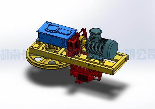 該驅(qū)動裝置主要包括防爆主電機、工作制動器、安全(輪邊)制動器、聯(lián)軸器、硬齒面減速機、驅(qū)動輪、軸承箱及機架。